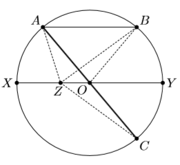 Пусть точки A и B – концы ломаной. Рассмотрим диаметр XY, параллельный AB (см. рис.). Есди AC – диаметр окружности, то точка C симметрична B относительно XY. Рассмотрим любую точку Z хорды XY. Так как AZ + BZ = AZ + CZ ≥ AC, Z не может лежать на ломаной, а значит, диаметр XY подходит.