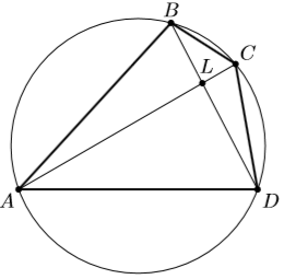 Решение 2: Пусть AL – самый длинный из отрезков AL, BL, CL, DL (см. рис.). Тогда, в силу равенства AL·CL = BL· DL, CL – самый короткий из этих отрезков. Значит, AL – CL > |BL – DL|, откуда AC² = (AL + CL)² = (AL – CL)² + 4AL·CL > |BL – DL|² + 4BL·DL = (BL + DL)² = BD², то есть AC > BD. Кроме того, из подобия треугольников ALB и DLC получаем, что AB : CD = AL : DL, то есть AB > CD. Аналогично из подобия треугольников ALD и BLC получаем