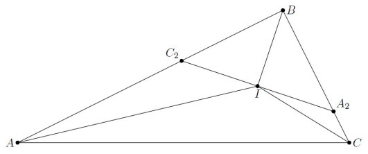 На гипотенузе AC прямоугольного треугольника ABC отметили точку такую C1, что BC = CC1. Затем на катете AB отметили такую точку C2, что