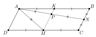 Пусть N – середина ВС, М – середина CD, AN = 2AM. Первый способ. Через точку М проведём прямую, параллельную ВС. Она пересекает АВ в точке K, а AN – в точке P. Тогда KP – средняя линия треугольника ВAN (рис. слева) и АР = ½ AN = AM. В равнобедренном треугольнике APM ∠AMP = ∠APM < 90°. Следовательно,