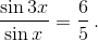 11/5 sin x = sin 3x + sin x = 2 sin 2x cos x = 4 sin x cos²x, значит, cos²x = 11/20.