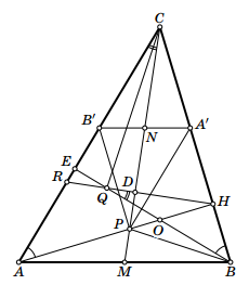 Проведём через точку P прямые PA' и PB' так, чтобы точки A' и B' лежали на BC и AC соответственно и прямые PA' и PB' были параллельны AC и BC соответственно (см. рис.). Заметим, что ∠CAH = 90° – ∠ACH = ∠QBC.