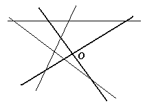 На листе бумаги были построены система координат (выделена жирно) и графики трёх функций: y = ax + b, y = bx + c и y = cx + a. После этого стёрли обозначения и направления осей, а сам лист как-то повернули (см. рисунок). Укажите на рисунке ось абсцисс и ее направление.