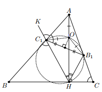 B1C1 || HbHc, то HcN : AL = HcC1 : AC1 = HbM : AK. Поскольку HA – биссектриса угла C1HB1, то AK = AL, поэтому HcN = HbM. Так как HA также биссектриса угла HcHHb, то ∠HcHN = ∠HbHM, следовательно, треугольники HHcN и HHbM равны. Таким образом, ортотреугольник треугольника ABC – равнобедренный, поэтому ABC – тоже равнобедренный. Противоречие.