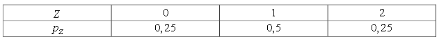 Запишем таблицы распределения случайных величин X, Y и Z.