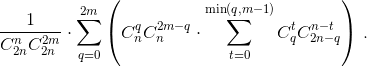 Учительница математики предложила изменить схему голосования на конкурсе спектаклей (см. задачу 165299). По её мнению, нужно из всех 2n мам выбрать случайным образом жюри из 2m человек (2m ≤ n). Найдите вероятность того, что лучший спектакль победит при таких условиях голосования.