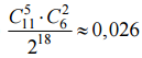 Общее число путей из 18 шагов равно 218. Значит, вероятность попасть в точку (8, 10), по дороге пройдя точки (5, 6) и (6, 6), равна