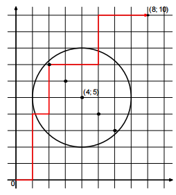 в) муха окажется в точке (8, 10), пройдя внутри круга радиуса 3 с центром в точке (4, 5).