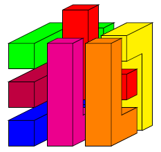 На верхней грани кубика 3×3×3 к центральному квадрату 1×1 приклеили кубик 1×1×1. Как разделить получившуюся фигуру на 7 равных?