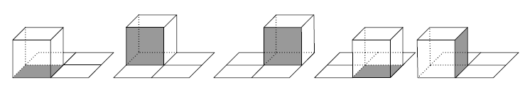 Пусть куб находится перед нами, а нижняя грань окрашена. Рассмотрим следующий путь куба (см. рисунок).