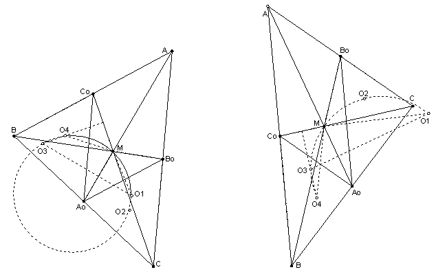 Докажите, что центры описанных окружностей треугольников MA0B0, MCB0, MA0C0, MBC0 и точка M лежат на одной окружности.
