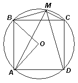 Около единичного квадрата ABCD описана окружность, на которой выбрана точка М.