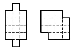 Фигура, изображённая слева, содержит полностью закрашенный столбец таблицы, а у фигуры, изображённой справа, такого столбца нет. При любой перестановке столбцов или строк этот столбец сохранится, так как перестановка столбцов изменяет только его расположение, а перестановка строк не изменяет в нём ничего. Следовательно, никаким количеством указанных операций получить из одной фигуры другую невозможно.