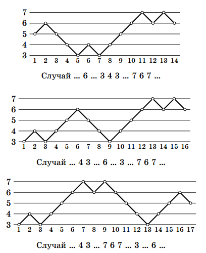 набросок). Можно обойтись и без перебора. Выберем участок графика между каким-нибудь сильным драконом и ближайшими к нему хитрыми драконами и "распрямим" его, заменив "впадину" на "горку" (см. рисунок).