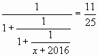 Решите уравнение 1 + 1 : (1 + 1 : (1 + 1 : (x + 2016))) = (1,2)².
