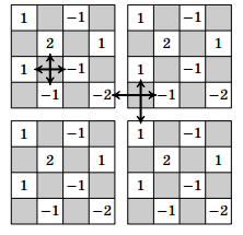 Бесконечную клетчатую доску раскрасили шахматным образом, и в каждую белую клетку вписали по отличному от нуля целому числу. После этого для каждой чёрной клетки посчитали разность: произведение того, что написано в соседних по горизонтали клетках, минус произведение того, что написано в соседних по вертикали. Могут ли все такие разности равняться 1?