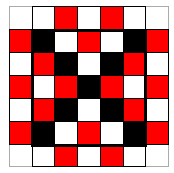 Пример. Покрасим четыре боковые грани в красный и белый цвета в шахматном порядке. Верхнюю и нижнюю грани покрасим как на рисунке.