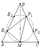 Рассмотрим описанную окружность треугольника MEF. Угол между касательной и хордой MF равен ∠MEF = ∠FMC. Поэтому MC и есть касательная. Значит, центр окружности лежит на высоте BM. Следовательно, эта высота является осью симметрии рисунка. Поскольку AE ≠ CF, то окружность пересекает каждую из боковых сторон в двух точках. Причём E и F не симметричны. Два возможных случая снабжены соответствующими индексами (см. рис.). Рассмотрим их.
