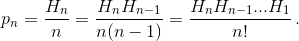где Hn = 1 + ½ + ... + 1/n – n-е гармоническое число. Учитывая, что p1 = 1 (если джентльмен только один, то он обязательно возьмёт свою шляпу), получаем