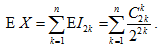 При n = 5 получаем EX = 2/4 + 6/16 + 20/64 + 70/256 + 252/2048 ≈ 1,707.