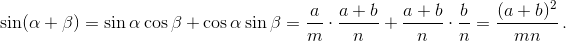α < 45° и β < 45°. Следовательно, γ < α + β < 90°. Теперь достаточно проверить, что sin (α + β) = cos γ.