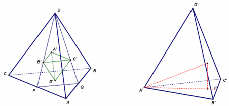 Пусть АВСD – данный тетраэдр, A', B', C', D' – точки пересечения медиан граней BCD, CDA, DAB, ABC. Грани тетраэдра A', B', C', D' параллельны соответственным граням исходного тетраэдра. Так, например, плоскость ABC параллельна плоскости A'B'C' и т.д.