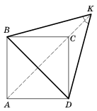 Поскольку картинка симметрична относительно прямой AC, то DK = BK = AC. А так как диагонали в квадрате равны, AC = BD. Таким образом, треугольник BKD – равносторонний, и угол BKD равен 60°. Опять в силу симметрии относительно прямой AC KA – биссектриса этого угла.