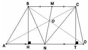Диагонали четырёхугольника АВСD пересекаются в точке О, М и N – середины сторон ВС и AD соответственно. Отрезок MN делит площадь четырёхугольника пополам. Найдите отношение ОМ : ОN, если AD = 2BC.