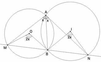 Так как ∠MOB = 2∠MАB = 2∠NАB = ∠NIB, то равнобедренные треугольники MOB и NIB подобны. Значит, BM : BN = OM : IN = R : r.