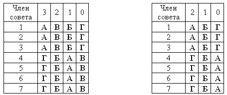 Предположим, что в совете голосовали семеро, и голоса распределились, как показано в таблице слева.