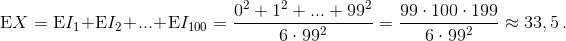 а) См. задачу 164440. б) Пронумеруем борцов от самого слабого №1 до самого сильного №100. Пусть Ik – индикатор события "k-й борец выиграл оба поединка". Вероятность победить соперника в каждом поединке для k-го борца равна вероятности того, что его соперником оказался один из тех k – 1 борцов, что слабее. Значит, вероятность победы равна k–1/99. Вероятность победить оба раза равна (k–1/99)², поэтому EIk = (k–1/99)².