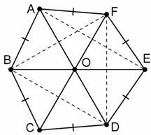 Поскольку треугольники ABD и EDB равны по трём сторонам, то четырёхугольник ABDE – равнобокая трапеция или прямоугольник. Её ось симметрии – серединный перпендикуляр к основаниям BD и AE. На этом же перпендикуляре лежат и вершины C и F равнобедренных треугольников BCD и AFE. Аналогично прямые AD и BE являются осями симметрии шестиугольника. Все три оси пересекаются в центре O описанной окружности треугольника BDF. Так как биссектрисы всех углов многоугольника пересекаются в одной точке, то его стороны равноудалены от неё.