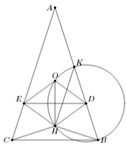 Из условия следует, что AO – биссектриса угла A, то есть AB = AC. Значит, ODHE – ромб. Первый способ. ∠ODH = 2∠ODE = ∠B, ∠DOH = ∠DHO = 90° – ∠B/2 = ∠BHD.