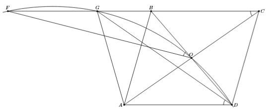 Из условия следует, что ∠GCA = ∠BCO = ∠FOB = 180° – ∠FOD = 180° – ∠FGD = ∠DGC. Следовательно, AGCD – равнобокая трапеция и