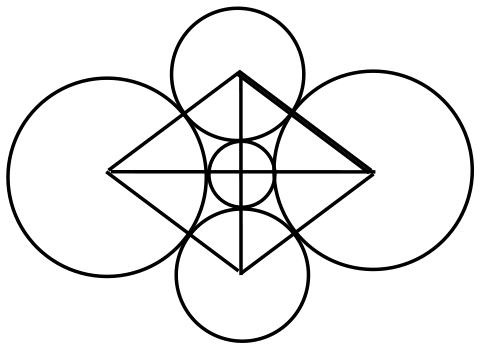 См. рисунок, на котором центры пяти монет находятся в вершинах четырёх треугольников со сторонами 3, 4, 5.