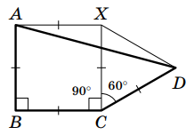 Достроим ABC до квадрата ABCX.