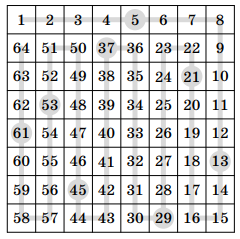 Приведем пример таблицы 8 × 8, заполненной требуемым
