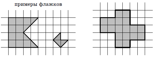 Будем называтьфлажкомпятиугольник, вершины которого — вершины некоторого квадрата и его центр. Разрежьте фигуру ниже справа на флажки (не обязательно одинаковые).