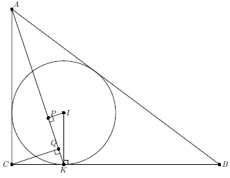 Пусть $I$ – центр вписанной окружности, $P$, $Q$ – проекции точек $I$, $C$ соответственно на $AK$ (см. рис.).