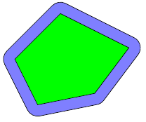 площадью $21$. Таня закрасила все точки, находящиеся на расстоянии не более $1$ от закрашенных Никитой (см. рис.).