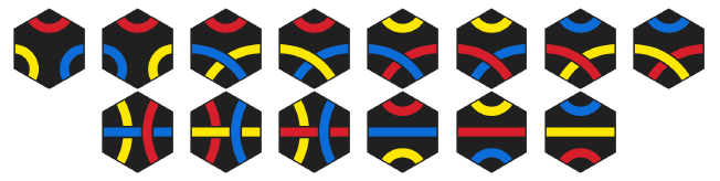 В игре Тантрикс-солитер возможны фишки 14 типов: