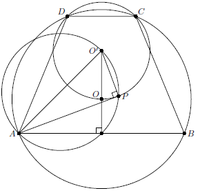 Пусть $O'$ – центр окружности $OCD$. Тогда $AO'$ – диаметр окружности $APQ$. Так как $O'$ лежит на серединном перпендикуляре к отрезку $AB$, середина $AB$ также лежит на окружности с диаметром $AO'$.