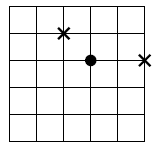 Лабиринт для мышей (см. рисунок) представляет собой квадрат 5 × 5 метров, мыши могут бегать только по дорожкам. На двух перекрёстках положили по одинаковому куску сыра (обозначены крестиками). На другом перекрёстке сидит мышка (обозначена кружочком). Она чует, где сыр, но до обоих кусочков ей нужно пробежать одинаковое расстояние. Поэтому она не знает, какой кусочек выбрать, и задумчиво сидит на месте.