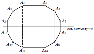 В силу равенства всех углов и соответствующих сторон этот 12-угольник