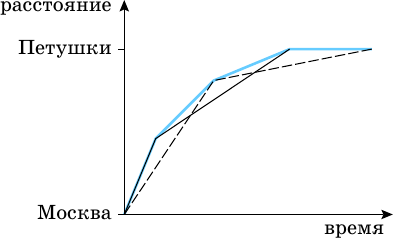 Проиллюстрируем пример для случая команд, состоящих из двух участников (см. рисунок, первая команда — сплошная чёрная ломаная, вторая — пунктирная).