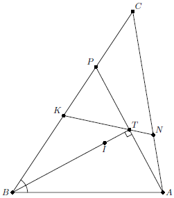 Известно (см., например, задачу215617), что точка $T$ пересечения прямой $KN$ и биссектрисы $BI$ является проекцией точки $A$ на $BI$. Поэтому, если $AT$ пересекает $BC$ в точке $P$, то высота $BT$ треугольника $BPT$ совпадает с его биссектрисой. Следовательно, $BP=AB$ и $CP$ – искомый отрезок.