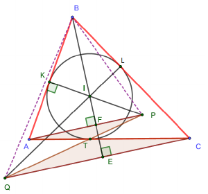 $AT=AK$ и $CT=CL$, и осталось доказать равенство $AK/AP=CL/CQ$. Оно следует из подобия треугольников $APK$ и $CQL$: