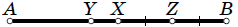 Тогда отрезки $YX$, $XZ$ и $ZB$ образуют треугольник: в сумме $XZ$ и $ZB$, как половина $AB$, больше $YX$, а неравенства $XZ < YX + ZB$ и $ZB < YX + XZ$ верны в силу равенства $XZ$ и $ZB$.