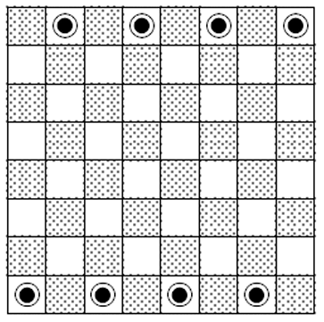 В противном случае сделаемнеэкономичноевзятие (за два хода). Выберем двух слонов разного цвета и рассмотрим путь, по которому первый слон мог бы пройти ко второму за два хода (такой путь всегда есть). Если на этом пути есть ещё слоны, найдём среди них двух ближайших друг к другу слонов разного цвета, и пусть один из них возьмёт другого за два хода.