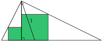 Диагональ квадрата площади $S$ – это биссектриса $CL$, и она равна $1$. Значит, сторона большого квадрата равна $\frac{1}{\sqrt{2}}$, а его площадь $S = \left(\frac{1}{\sqrt{2}}\right)^2 = \frac{1}{2}$. Поэтому сумма площадей двух меньших квадратов тоже равна $\frac{1}{2}$ и не зависит от углов исходного треугольника.